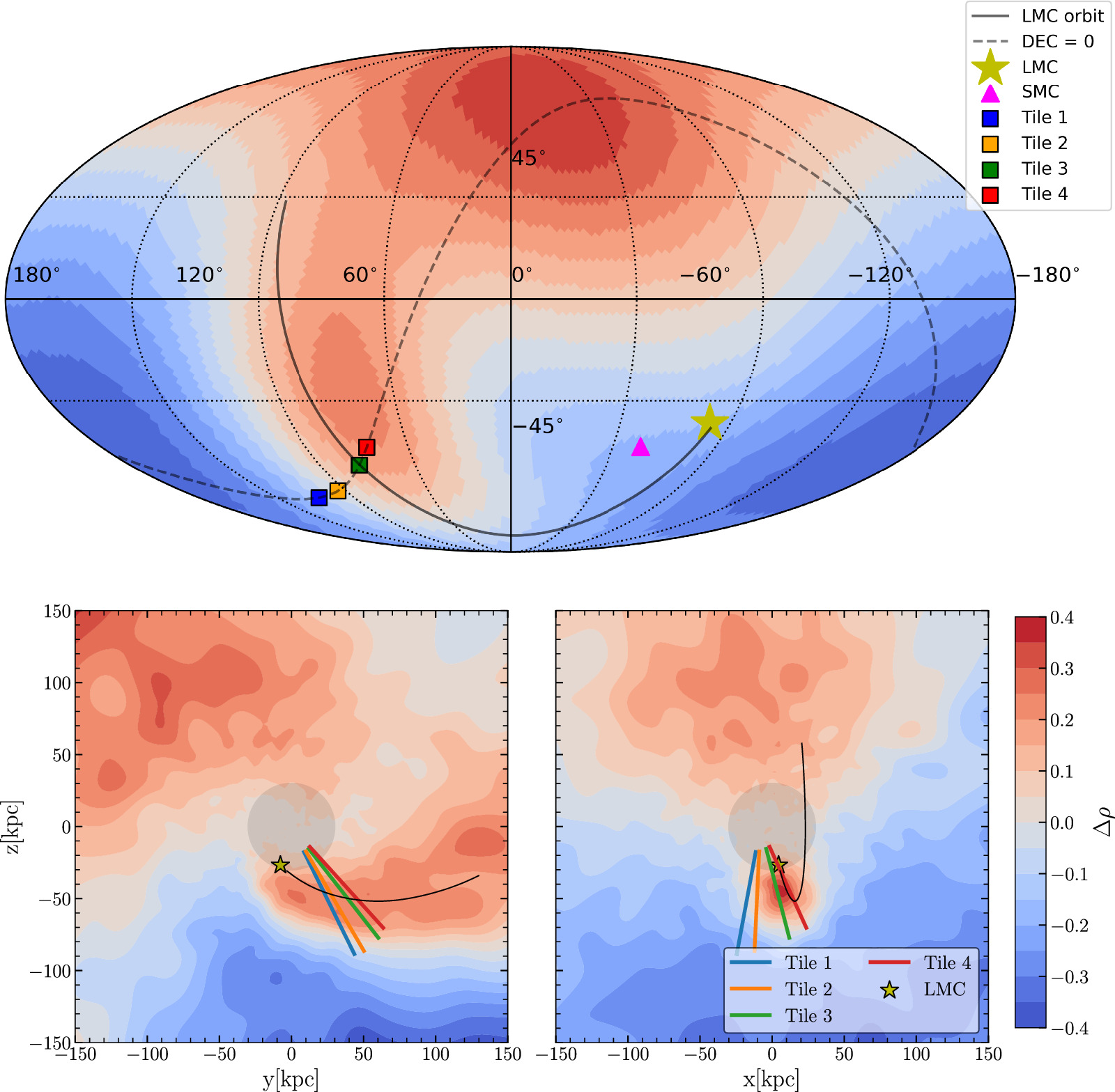 Through a photometric campaign using the Dark Energy Camera on the 4m Blanco Telescope and the VIRCam instrument on the 4m VISTA telescope, we identified using two tracers, the dynamical friction overdensity on the outskirts of the Milky Way halo. This work involved a novel apporach to select nMSTO and red giant populations in the faint end where non-resolved galaxies dominate the number count.